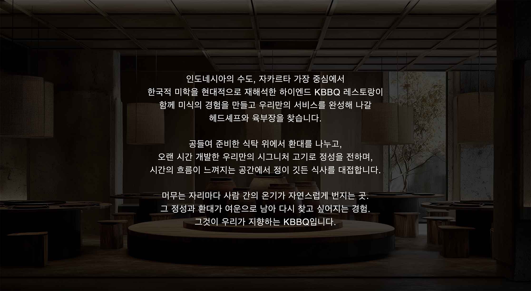 [셰프/육부장]자카르타에 오픈할 하이엔드 KBBQ 레스토랑이 헤드셰프와 육부장을 찾습니다.