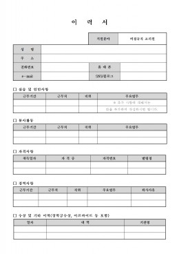 | 이름 | 성별/나이 | 이력서제목 | 지원분야 | 희망근무지 | 접속일 |
