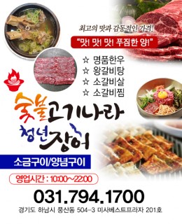 - 본 게시물은 숯불고기나라 청년장어 에서 제공한 자료로 개인정보를 포함하고 있으며 임의유포, 수집, 배포가 금지됩니다.